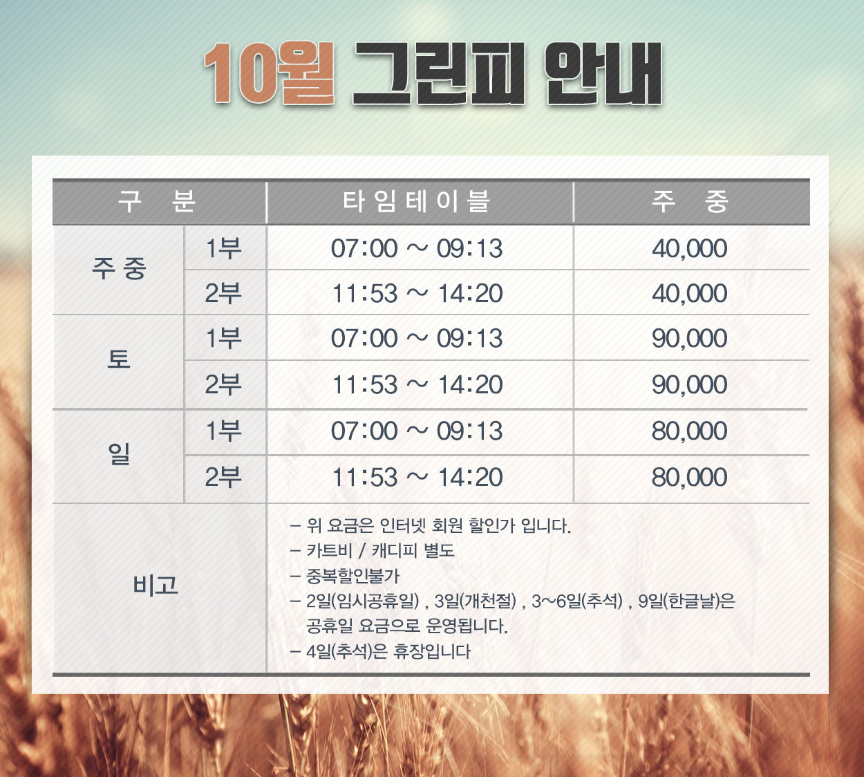 10월 그린피 안내