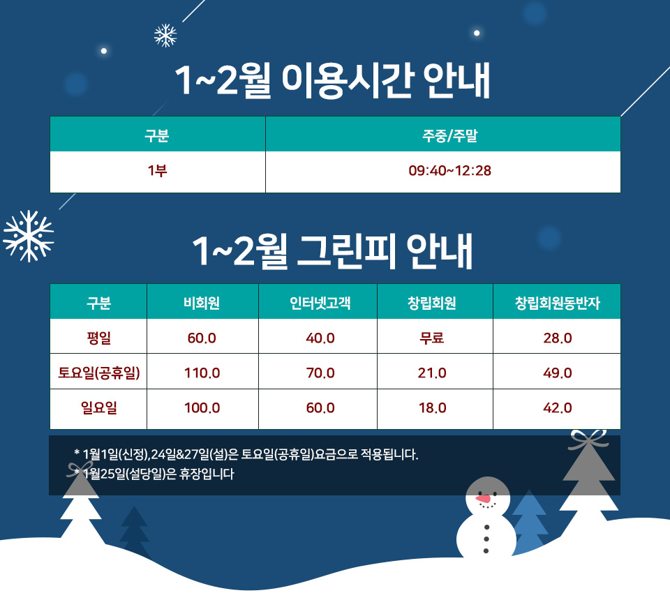 1~2월 그린피 안내