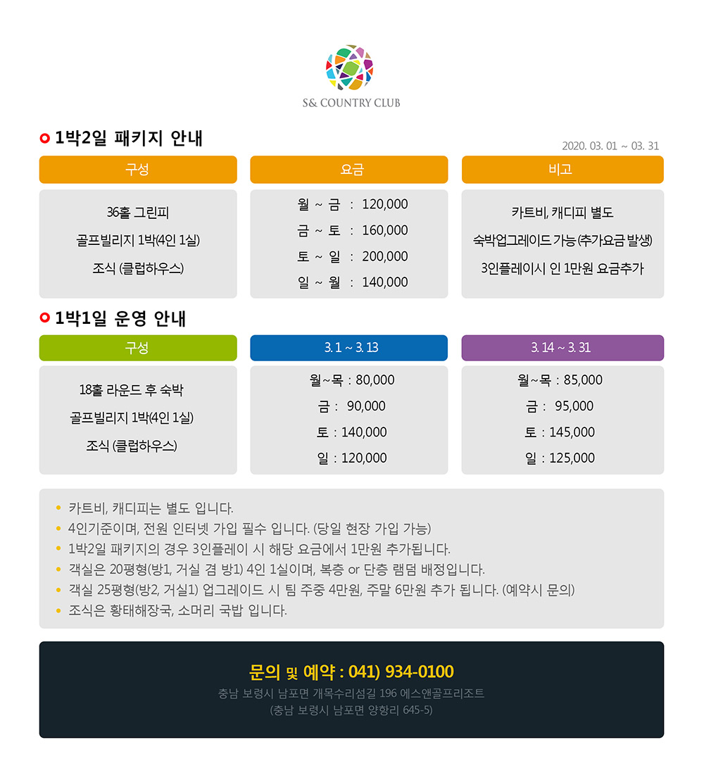 3월 1박2일 패키지 안내