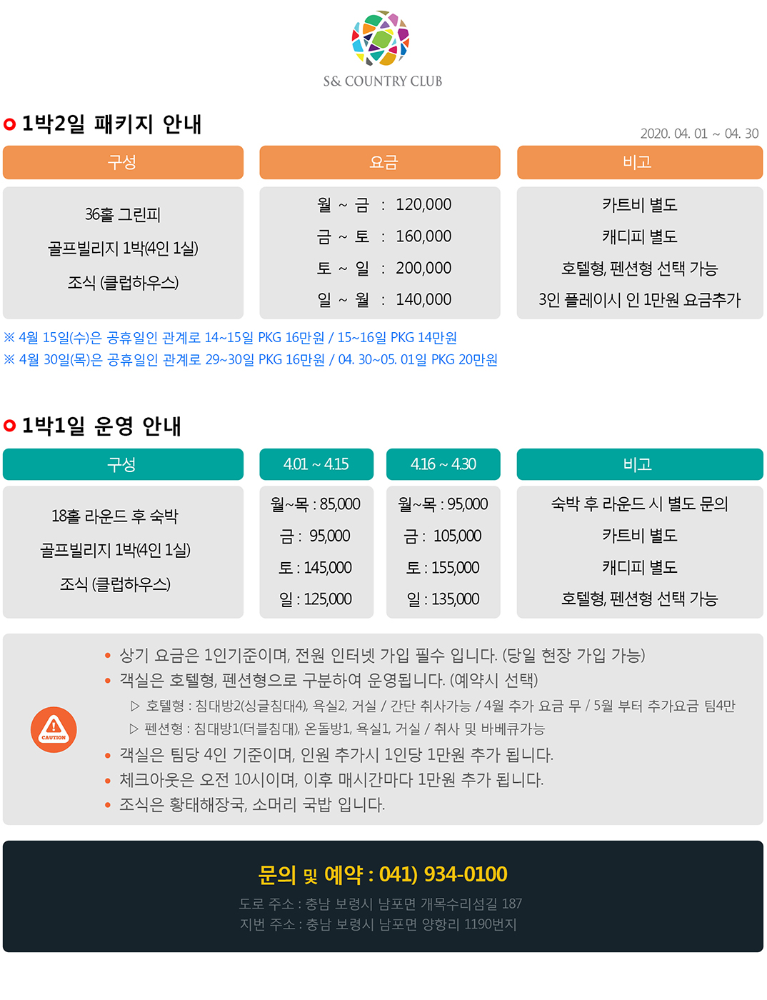 4월 1박2일 패키지 안내
