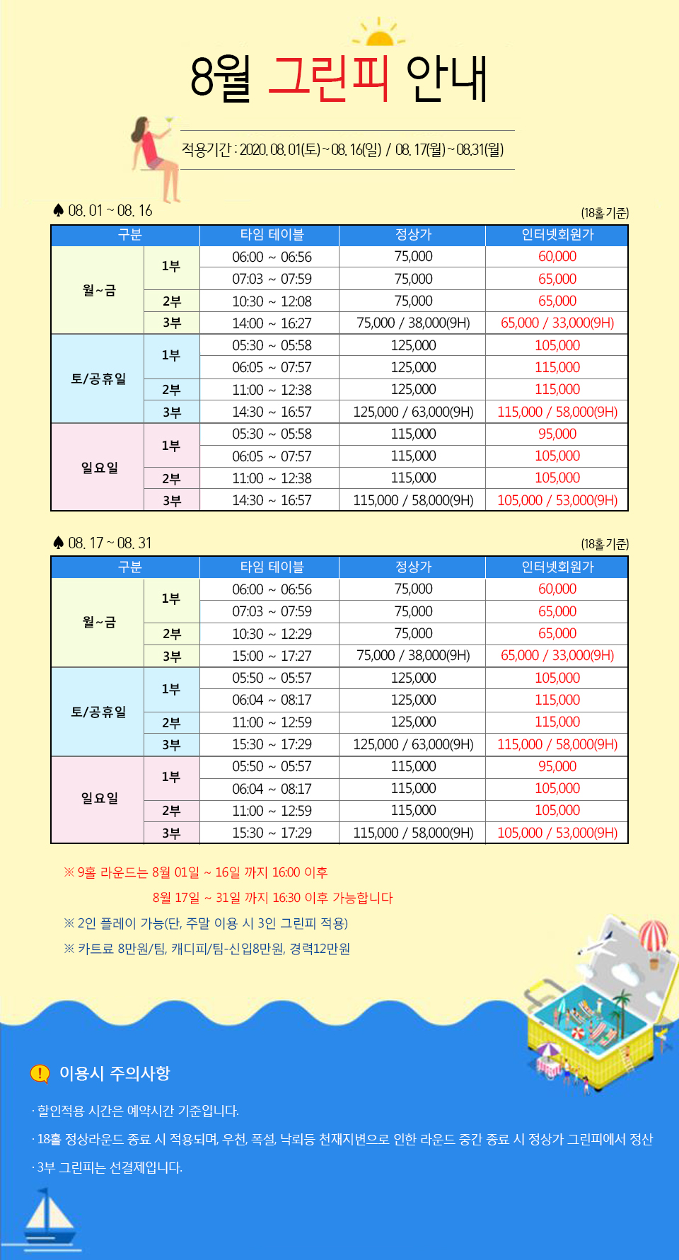 8월 그린피 안내