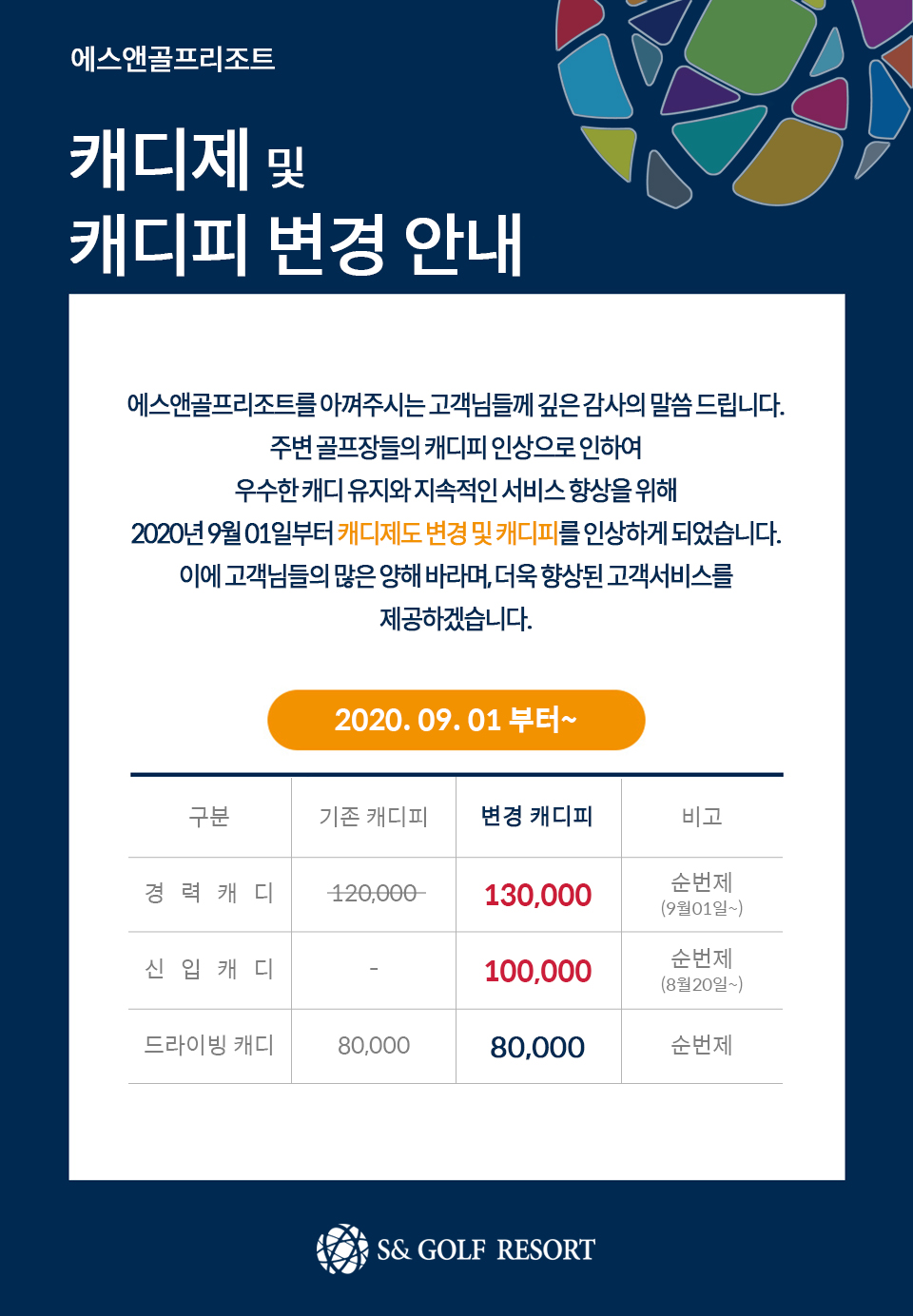 캐디제 및 캐디피 변경 안내